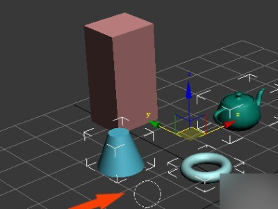 1、 打开3d max软件(这里用的3d max2010版的软件)。可看到四个视图窗口,在【透视图】区,绘制出一个长方体和球体、圆锥体、圆环的图形出来,如下图所示。