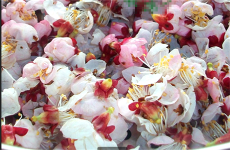 将用温热水浸泡几个小时后备用,将采摘的杏花用清水洗干净晾干水分备用,