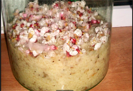 糯米2斤、酒曲8克、新鲜花5斤、凉开水1.5斤、发酵坛,