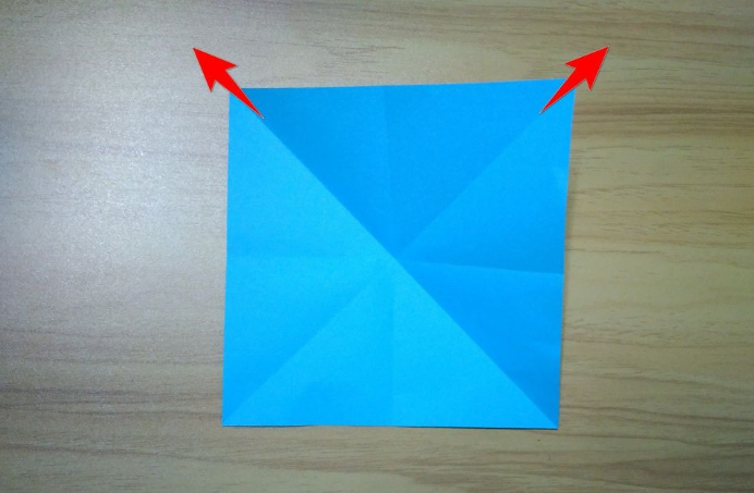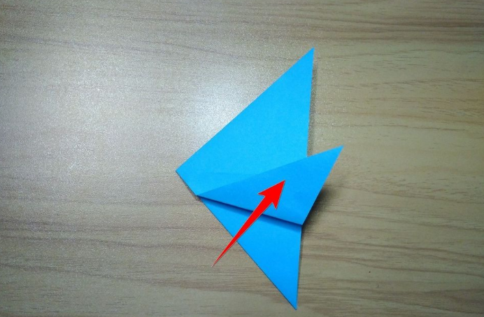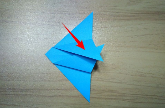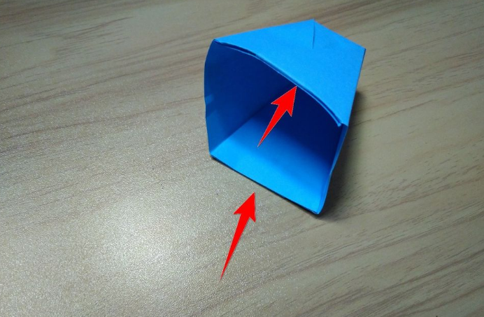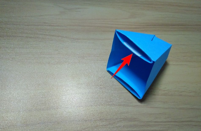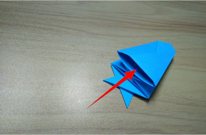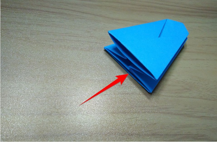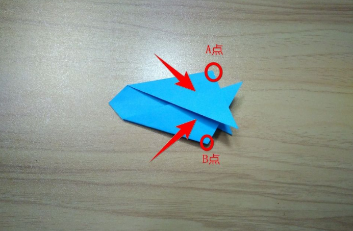 11、上图A点、B点连成一边,向里面折,折到箭头所指的里面。