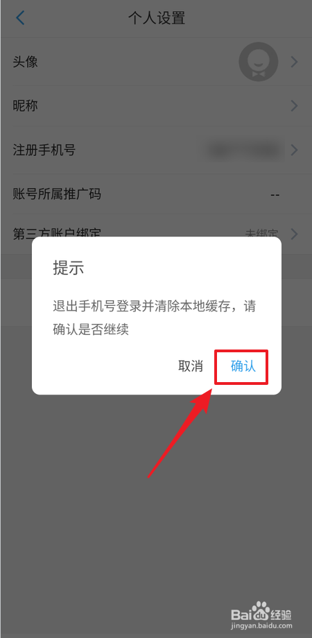 3/4在【个人设置】界面,点击【退出登录】按钮。