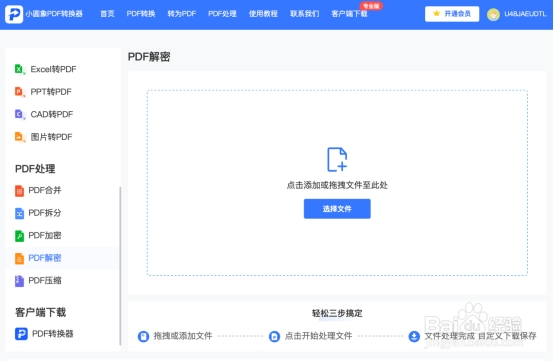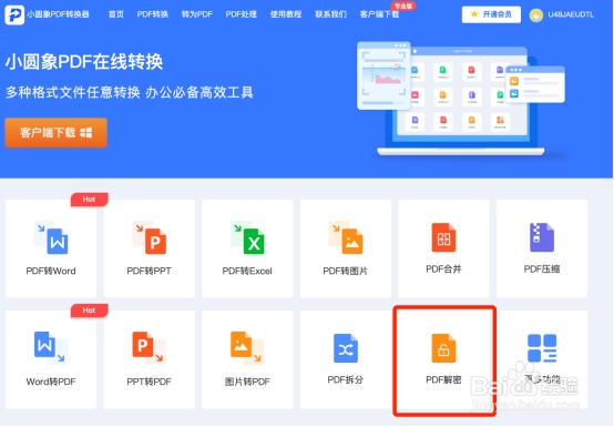 官网首页如图所示,在功能区中有多种服务,我们找到【PDF解密】选项,点击它进入下一步操作。