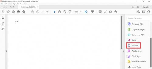 接下来介绍一个稍微费时费力但也很好用的解密方法,那就是用Adobe Acrobat Pro DC。经常要处理PDF的人对这款软件可能并不陌生,它的专业处理PDF文档的,所以功能也比较齐全,包括PDF解密它也是能办到的。先用该软件打开PDF文档,这时候没密码没关系,点击侧栏中的【Protect】选项,系统会自动跳转到新的页面。