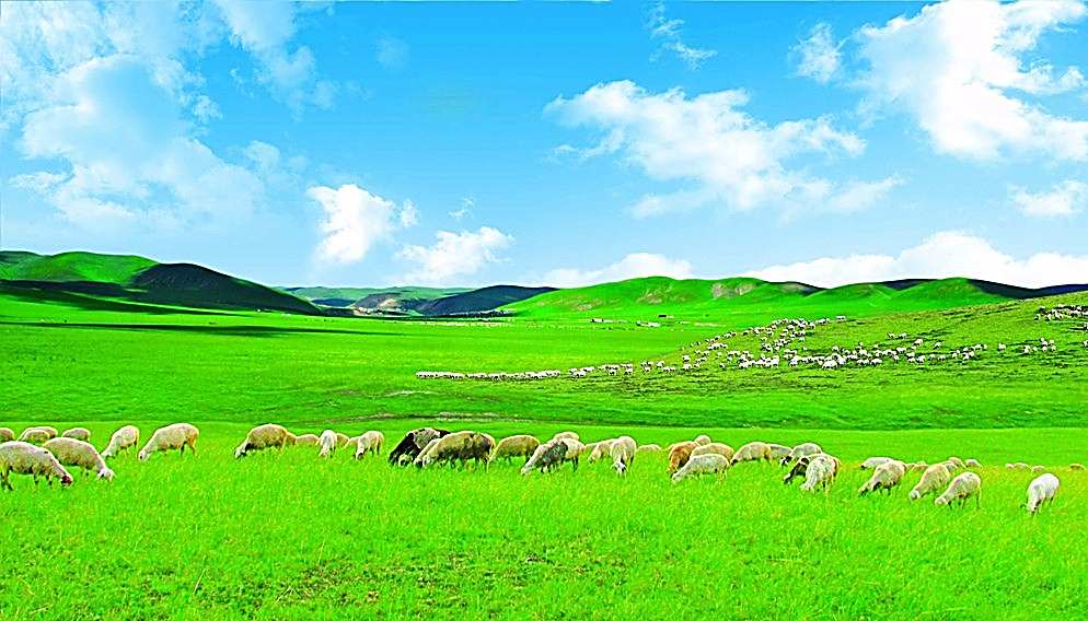 最后三句描绘了一幅水草丰盛、牛羊肥壮的草原全景图。