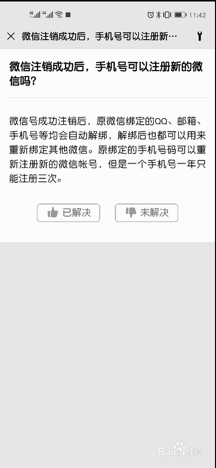 6/7点击“微信号注销成功后,手机号可以注册新的微信号吗?”问题项。