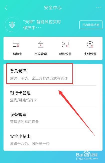 5/10接着,进入安全中心界面,在界面中选择“登录管理”,点击进入。如图:
