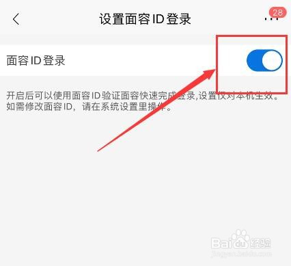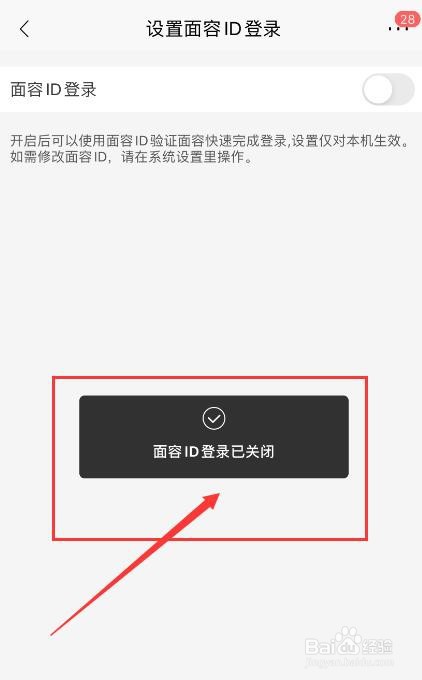 7/10接着,进入设置面容ID登录界面,在界面中点击右侧的开启按钮关闭该功能。如图: