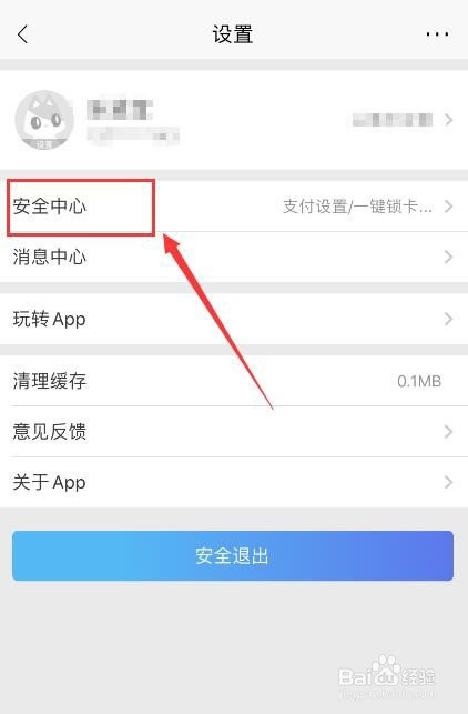 4/10接着,进入设置界面,在界面中选择“安全中心”,点击进入安全中心界面。如图: