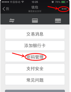 3、进入钱包界面之后,点击上方右侧,三个点状的按钮,弹出如下图所示的选项,选择“密码管理”选项,点击进入。