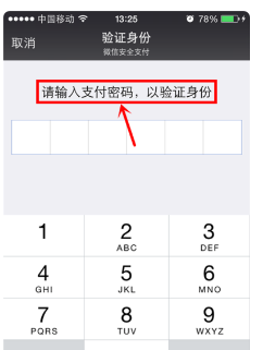 5、由于是第一次开启手势密码,这时微信会提示你输入支付密码,这也是为了保证大家账户的安全性。