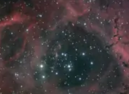 解析:NG2244是蔷薇星云中的一个疏散星团。星等为4.8等,赤经为6时31分55.5秒,赤纬为+4°5635。在1830年首次被约翰·弗里德里希·威廉·赫歇尔发现。它距离地球大约5500光年,位于巨大的蔷薇星云核心,呈长条状。一般时候蔷薇星云比NGC 2244星团要大三到四倍。