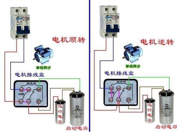 两个电容的两相电机怎么接线,有几种接法,如图,急求
