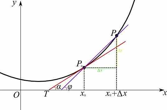 导数(Derivative)是微积分中的重要基础概念。当函数y=f(x)的自变量x在一点x0上产生一个增量Δx时,函数输出值的增量Δy与自变量增量Δx的比值在Δx趋于0时的极限a如果存在,a即为在x0处的导数,记作f(x0)或df(x0)/dx。