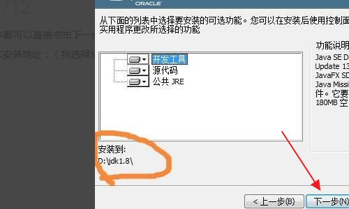 3、基本都可以直接点击下一步,等到了下图选JDK安装地址:(我选择放在D:jdk1.8下)