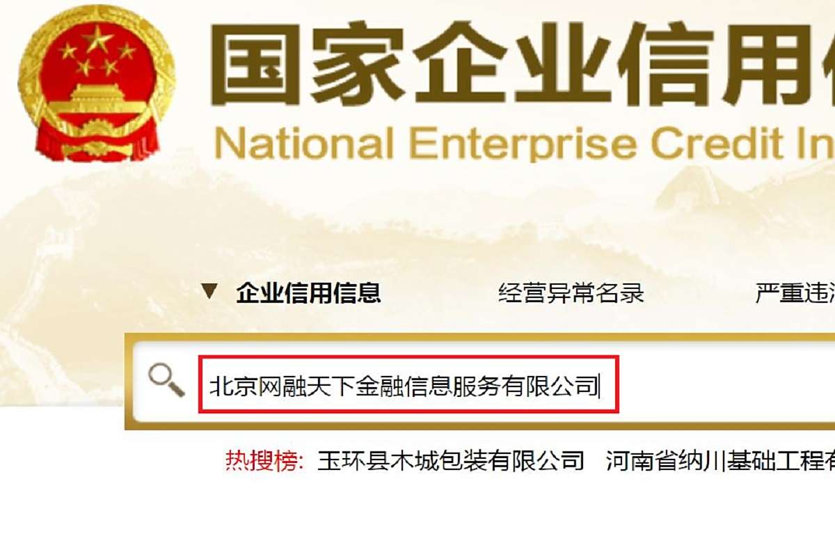 二、在国家企业信用信息公示系统的首页搜索框输入“北京网融天下金融信息服务有限公司”,点击查询;