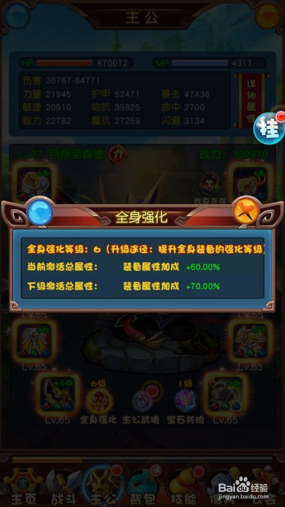 装备是提升战力最重要途径,装备每5级能更换一套。每一次更新装备,所提供的属性对主公来说,都是质的飞跃,在后期宝石、强化以及附魔都饱和后,更换装备就更加是提升主公战力的最重要途径了。反正有更高级、更高品质的装备就换,准没错。