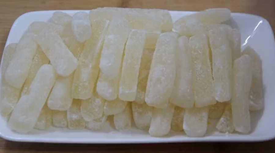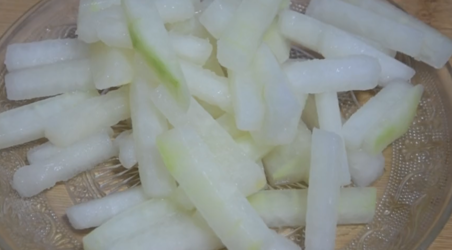 6、第二天将冬瓜条拿出,用水清洗干净备用。