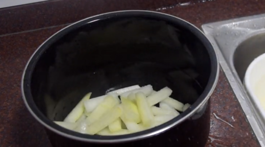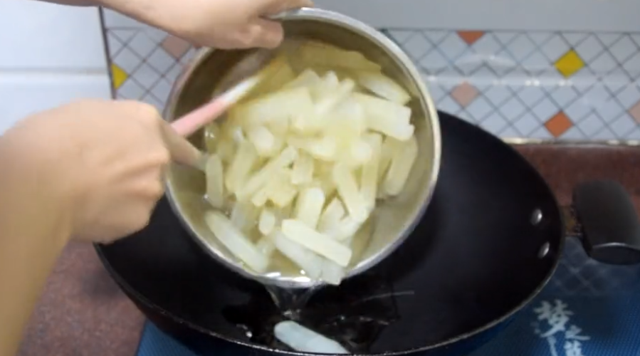 11、腌制好后,将冬瓜条倒入锅中开中小火。