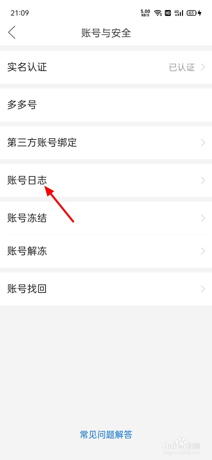 4/6在账号日志界面,点击非本人操作请立即处理。