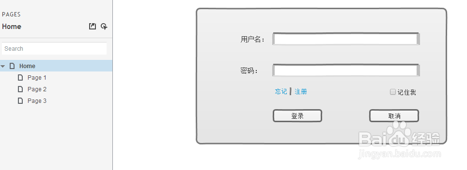一般情况下,登录界面会有忘记密码和注册界面的链接。Axure RP 8是一款制作原型的工具,可以使用这个工具设计出一个登录界面。其中,界面有用户名、密码、忘记和注册、登录按钮和取消按钮。下面将讲述如何利用它设置一个界面并带有链接,如下步骤:工具/原料moreAxure RP 8浏览器截图工具图片工具方法/步骤1/6分步阅读