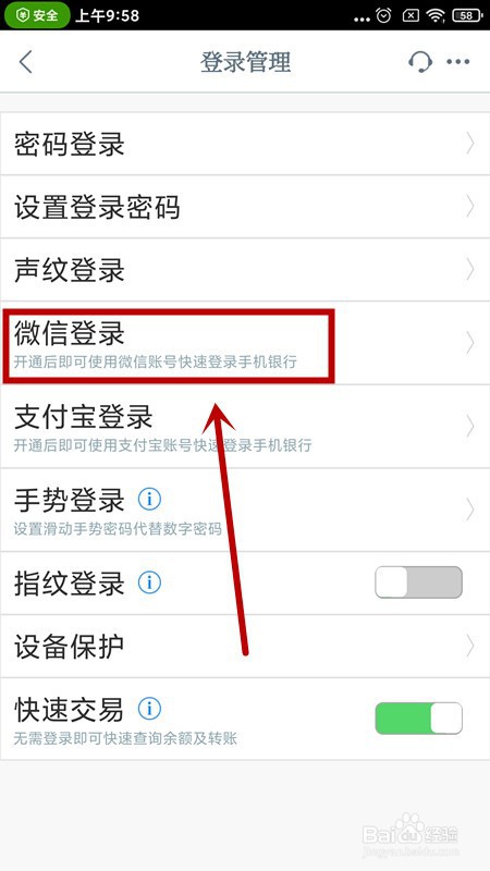 6/8进入【登录管理】页面,选择【微信登录】选项点击。