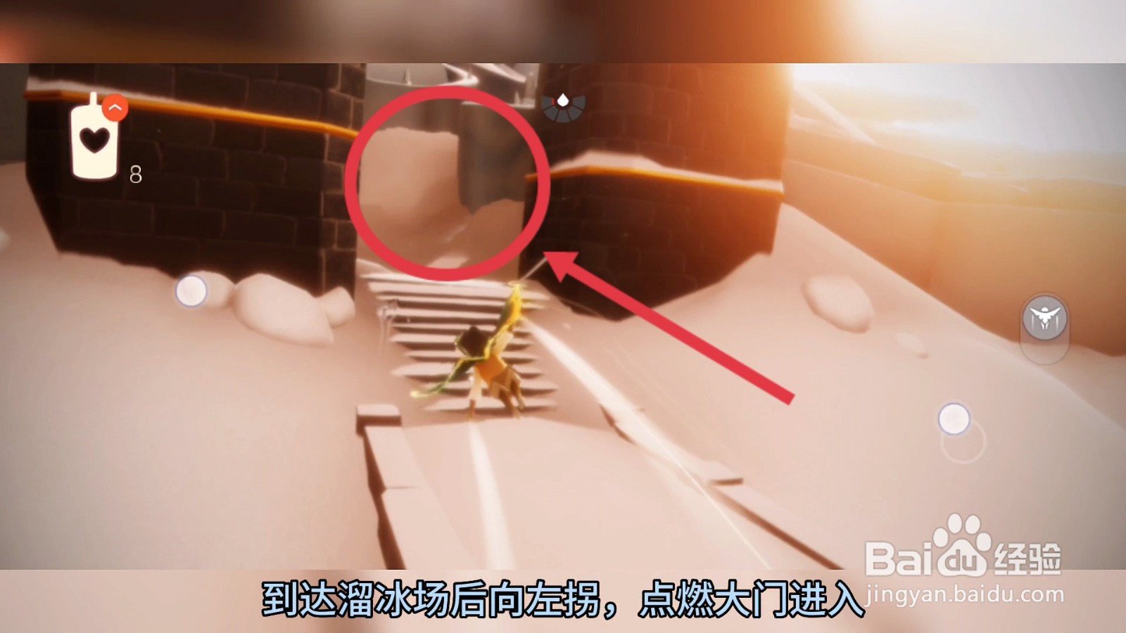 一路向前直到进入溜冰场,左拐看到隐形门,点燃进入。