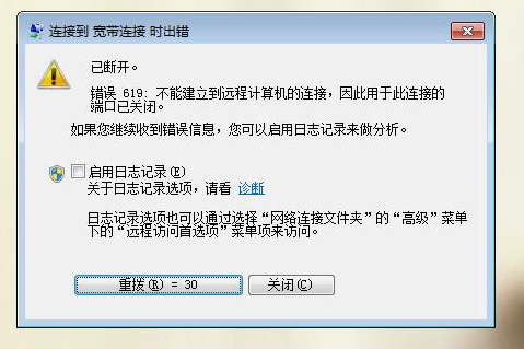 错误619是宽带ADSL拨号上网用户常常遇到的故障提示。出现该问题的常见原因为用户名/密码输入错误,此外还有另外原因同样会导致该问题的发生。