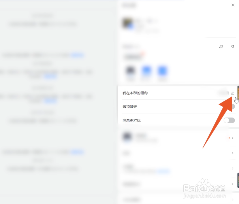 切换出现新的功能页之后,点击我在本群的昵称后的铅笔图标。