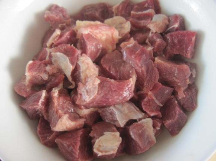 4、锅中坐水,放入两片姜,放入牛肉块焯水
