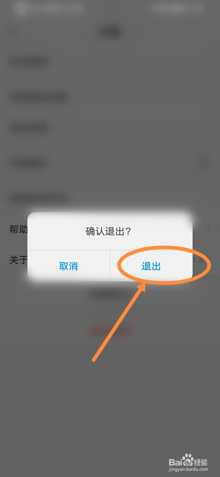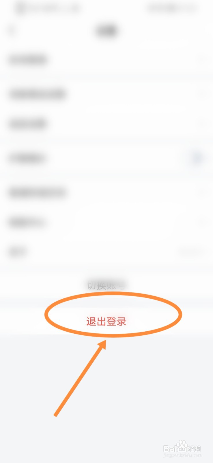 3/4在打开的设置页面中找到底部箭头标记(红色)的“退出登录”选项,点击此按钮即可,如图