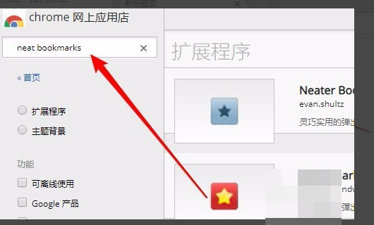 2、这时就会打开chrome网上应用商店页面,在页面中输入NeatBookmarks进行搜索。