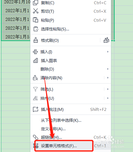鼠标右击,点击设置单元格格式。