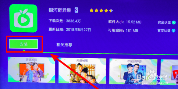在电视应用市场内,找到爱奇艺TV电视版银河奇异果,下载并安装。