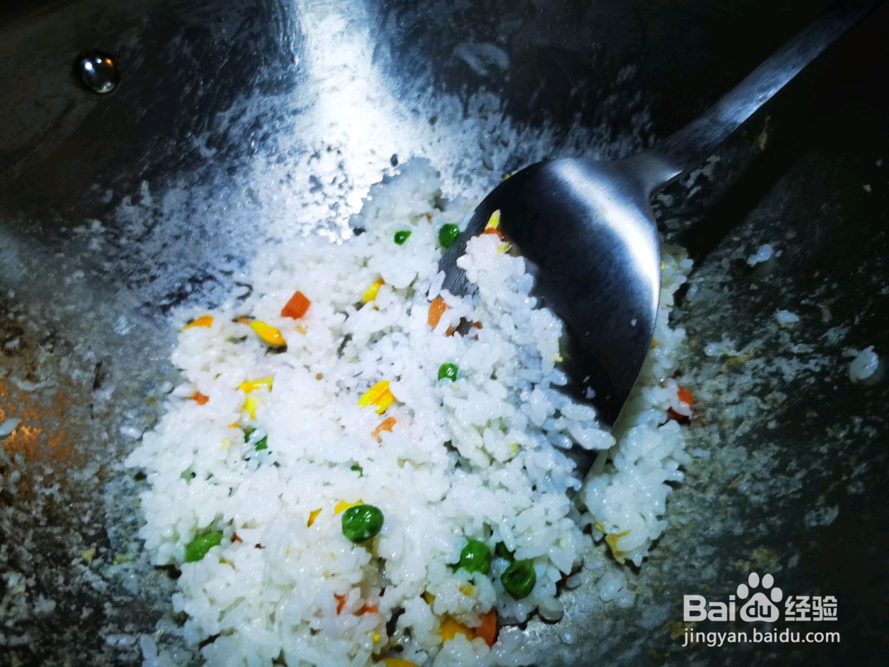 8/15加入炒好的鸡蛋,加胡椒海盐,鸡粉,翻炒均匀