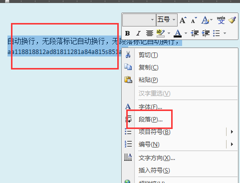 二、 这时可以选中整个段落,右键点击选中的段落,右键菜单中点击“段落”。