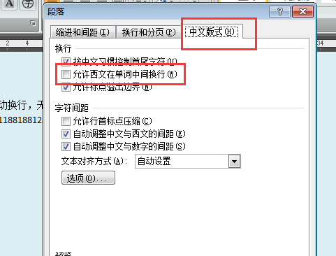 四、问题解决,效果如下图,勾选了该项后,会在英文或英文+数字的组合中间断开后进行换行。