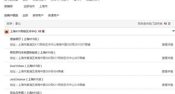 3、选择右方需要的商户类别,即可查询商通卡合作商户。