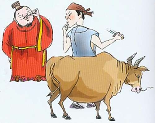 有个名叫丁的厨师给文惠君宰牛。他的手接触的地方,肩膀靠着的地方,脚踩着的地方,膝盖顶住的地方,都哗哗地响,刀子刺进牛体,发出霍霍的声音。没有哪一种声音不合乎音律:既合乎《桑林》舞曲的节拍,又合乎《经首》乐章的节奏。