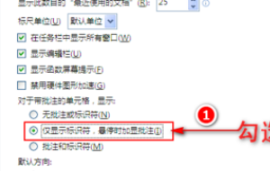 4、找到”显示“后,会发现在其下方处有一些关于单元格批注的相关内容。这时我们也就会明白为什么插入的单元格不显示批注,那是因为勾选了”无批注或标识符“选项。