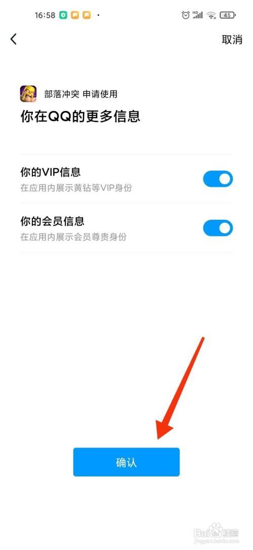 3/3点击同意,如下图,点击确认,qq登录版部落冲突,这样就可以使用QQ登录部落冲突了