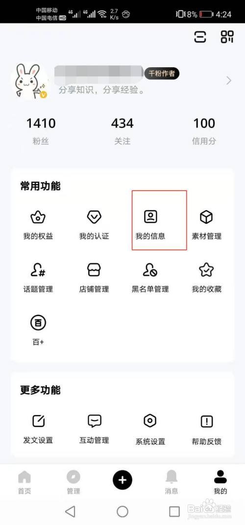 3/5如图所示,进入我的账号页面,点击“百家号账号管理”。