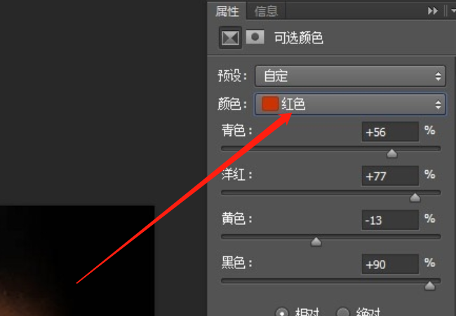 7、在菜单栏选择“图层-新建调整图层-可选颜色”,设置参数自定,调整红色。