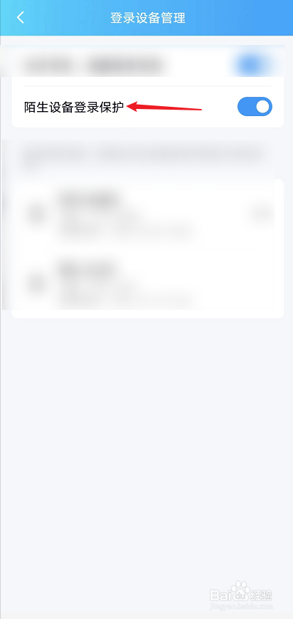5/5进入后选择陌生设备登录保护,点击右方选择开启即可