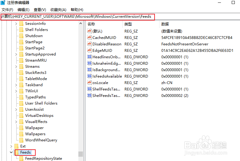 2/4打开注册表编辑器并导航到:HKEY_CURRENT_USER\Software\Microsoft\Windows\CurrentVersion\Feeds