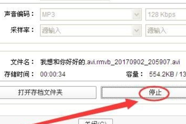 5、当视频播放到需要用premiere编辑部分即将结束的时间点,再次按alt+c调出视频录制界面,点按停止。