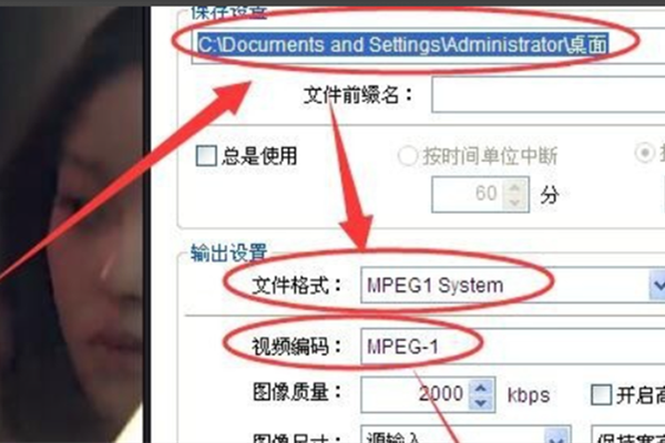 4、播放该视屏,当视屏播放到需要用premiere编辑的部分的起点时间前,点按alt+c调出录制视频界面,然后为录制视频选择保存位置,此处选择了桌面,在输出设置中选中一种premiere可以兼容的文件格式及视频编码,然后点按开始。