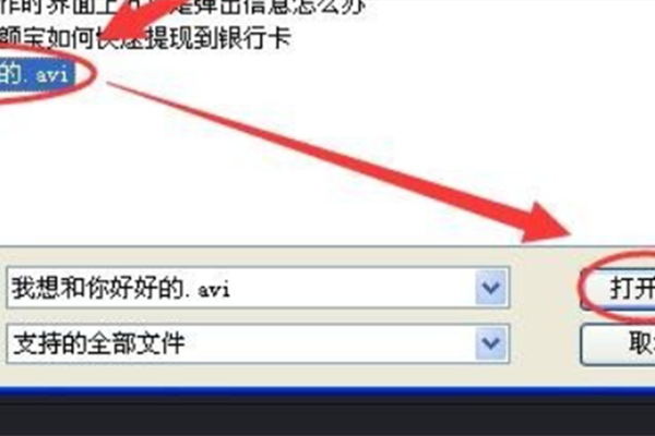 3、找到需要打开的rm或者rmvb文件,然后鼠标左键点选该文件,然后点按打开标志。