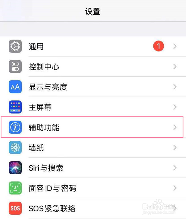 1、进入手机中的设置功能,设置功能中找到【辅助功能】点击进入。