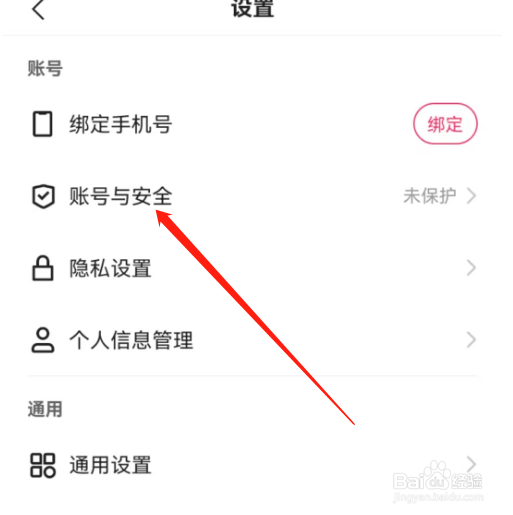 打开安卓版快手极速版的设置页面,点击账号与安全。