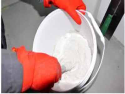 1. 选择一个干净、合适的容器,将瓷砖填缝剂专用搅拌液倒入,注意用量,然后再慢慢加入瓷砖填缝剂,搅拌均匀直到成无粉团的膏状,静置3-5分钟,再均匀搅拌一次。